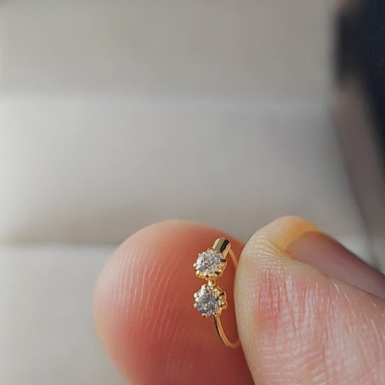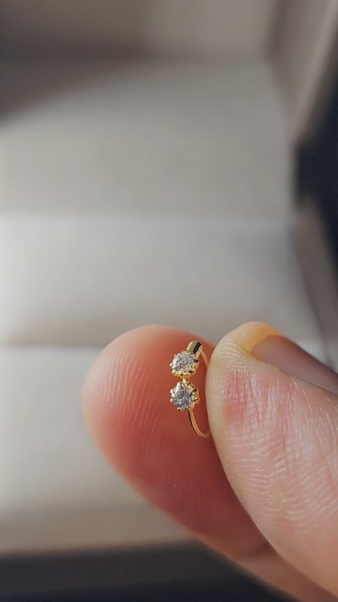 Elevate your elegance with this beautifully crafted twisted gold nose ring, made from radiant 21-carat gold. Designed with a delicate spiral twist, it features two shimmering stones that add a subtle sparkle and sophistication. Whether for daily wear or special occasions, this piece combines traditional charm with a modern edge.